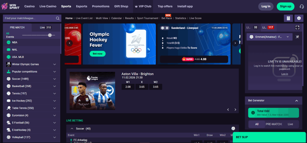 Winspirit má minimalistické rozhraní bez rušivých animací nebo agresivních pop-up oken. Stránky se načítají rychle, přechod mezi sekcemi je plynulý. Na první pohled působí platforma spolehlivě — nic zbytečného, vše na svém místě. Registrace proběhla bez komplikací a herní účet byl přístupný okamžitě.
